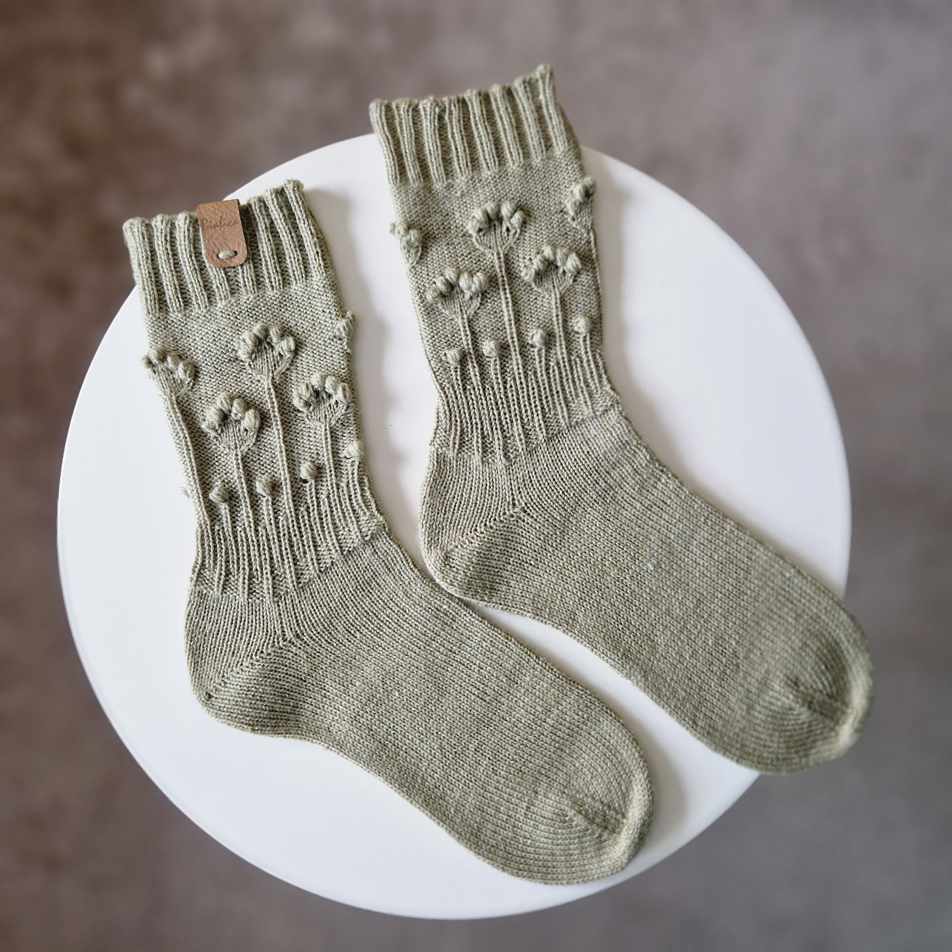 Ručne pletené ponožky s vypletaným vzorom kvetov