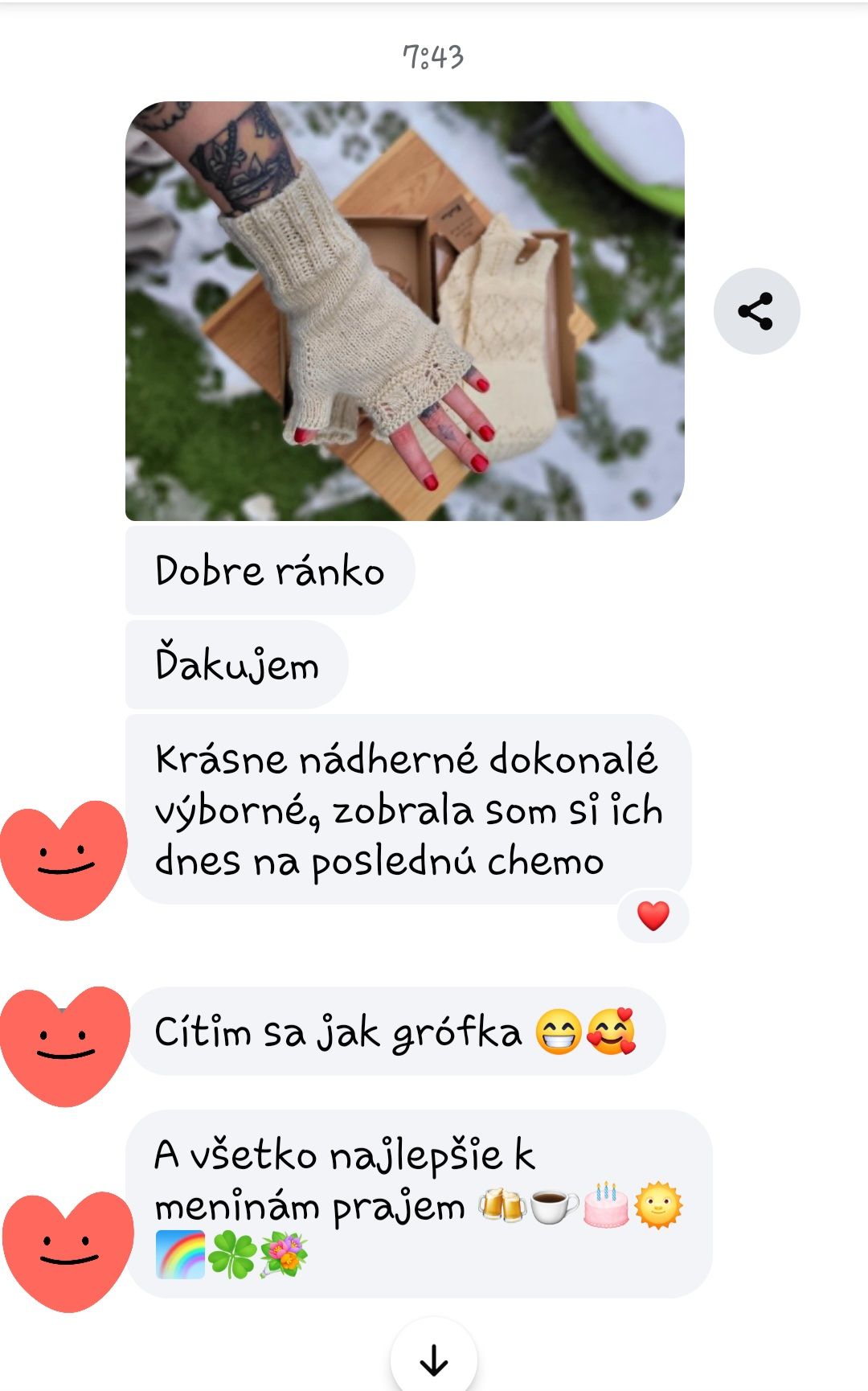 Najväčšou odmenou pre mňa je, keď ste s mojou prácou spokojní, keď sa vám ponožky odo mňa páčia, sadne vám veľkosť, vyhovuje farba. Teším sa, že vás zahrejú a sprevádzajú každodenným životom.